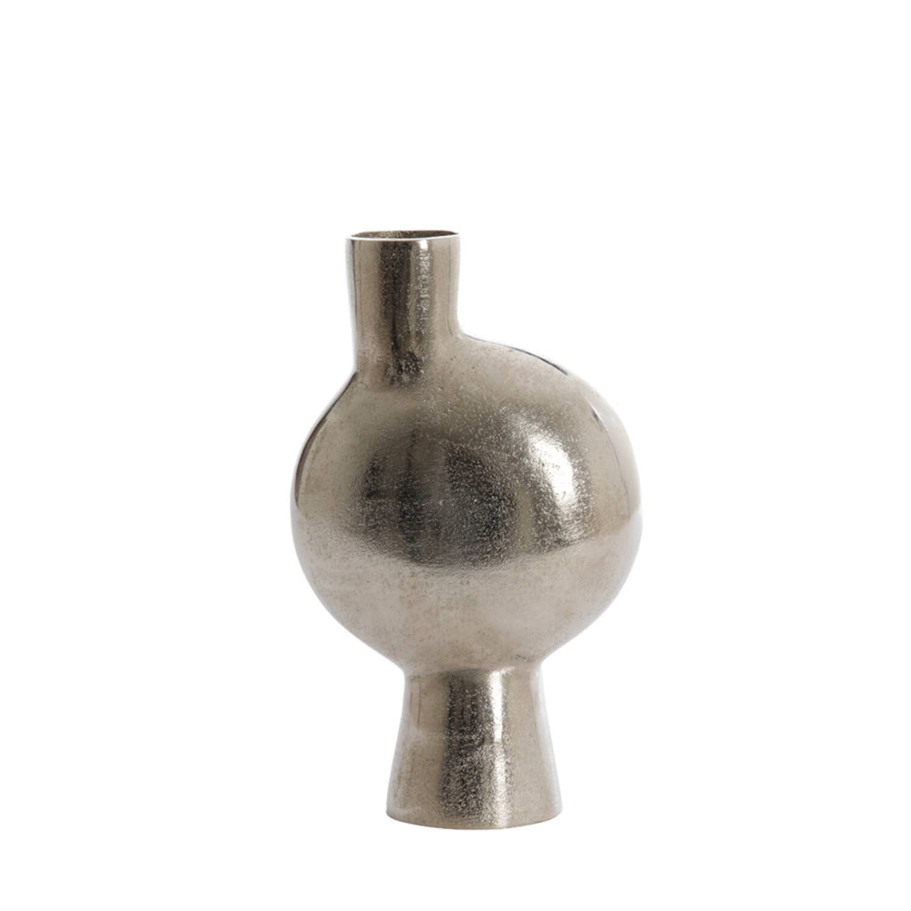 Ontdek de elegantie van onze Zilveren Ruw Nikkel Vaas, een prachtig accentstuk voor jouw huisdecoratie. Met een hoogte van 26 cm is dit vaasje niet alleen een opvallende toevoeging aan elke ruimte, maar ook een verfijnde keuze voor het presenteren van jouw favoriete bloemen of decoratieve takken. Het vaasje heeft een speelse en unieke vorm, waardoor het een charmant en eigentijds karakter krijgt.