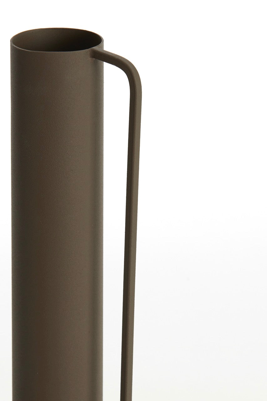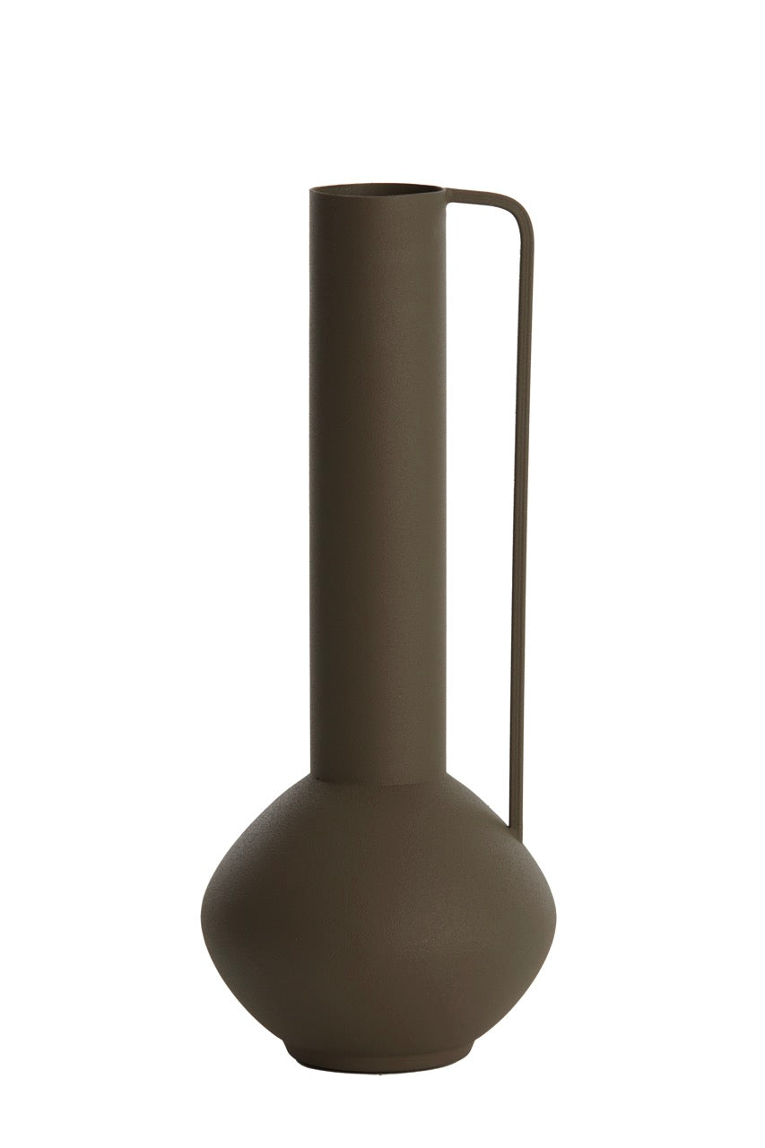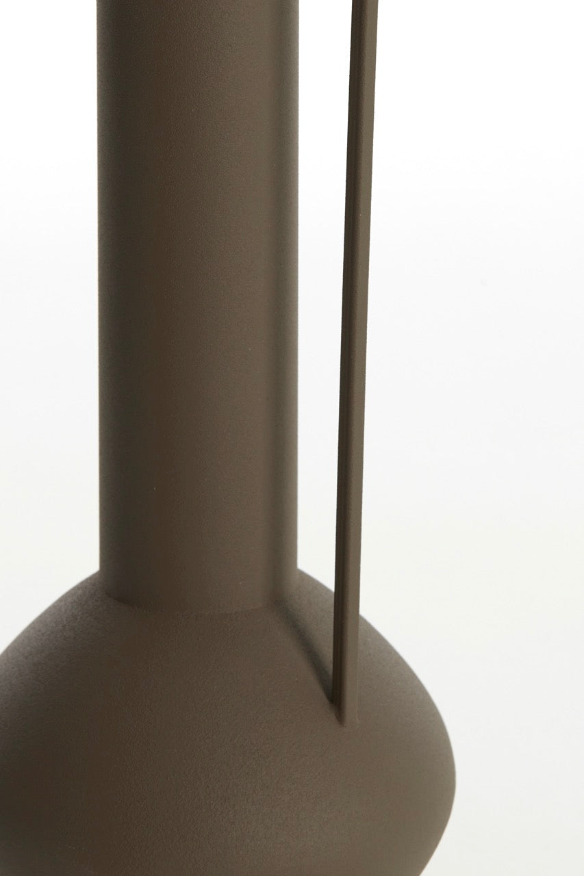 Vaas Panzano is vervaardigd uit metaal en afgewerkt in een matte, diepe bruintint. Het minimalistische ontwerp met subtiele vormdetails maakt deze vaas perfect voor wie houdt van een rustig, modern interieur met karakter. De smalle opening leent zich ideaal voor een enkele tak, een kunstbloem of een droogbloem, maar ook zonder inhoud is deze vaas een stijlvolle blikvanger.