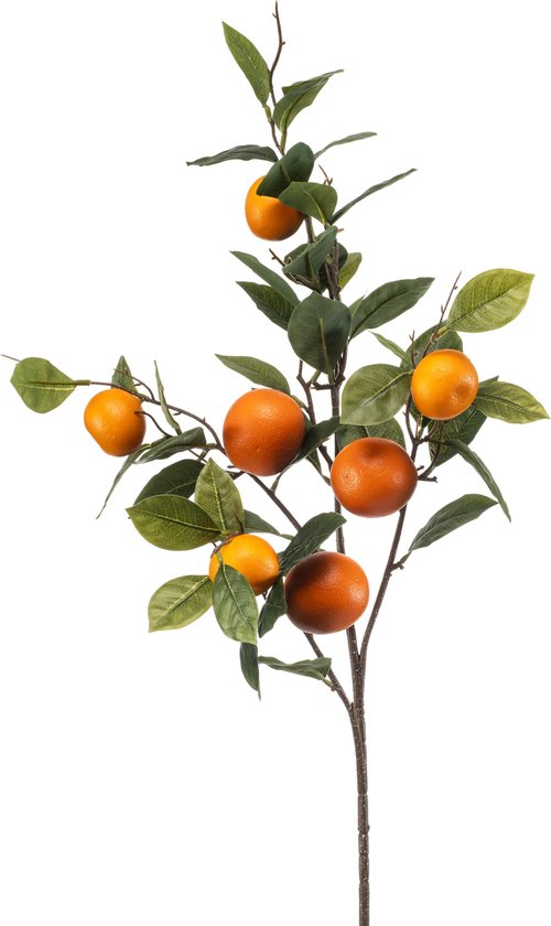 Verleihen Sie Ihrem Interieur mit dem Luxus-Obstzweig Orange (95 cm hoch) einen Hauch mediterranen Charme. Dieser realistische Kunstzweig mit leuchtendem Orange und frischen grünen Blättern ist die perfekte Dekoration, um Ihrem Zuhause, Büro oder Gastronomiebetrieb ein stilvolles und natürliches Aussehen zu verleihen.