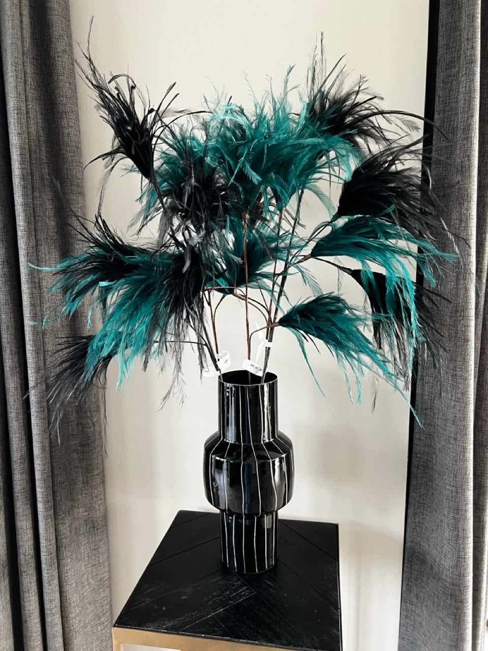 Verleihen Sie Ihrem Interieur mit der SENUMA Vase einen stilvollen und luxuriösen Look. Diese elegante schwarze Vase mit weißen Streifen ist ein echter Hingucker in jedem Raum. Sie besteht aus robustem Metall , erhält aber dank der glänzenden schwarzen Glasoberfläche ein luxuriöses, reflektierendes Aussehen, das noch mehr auffällt.